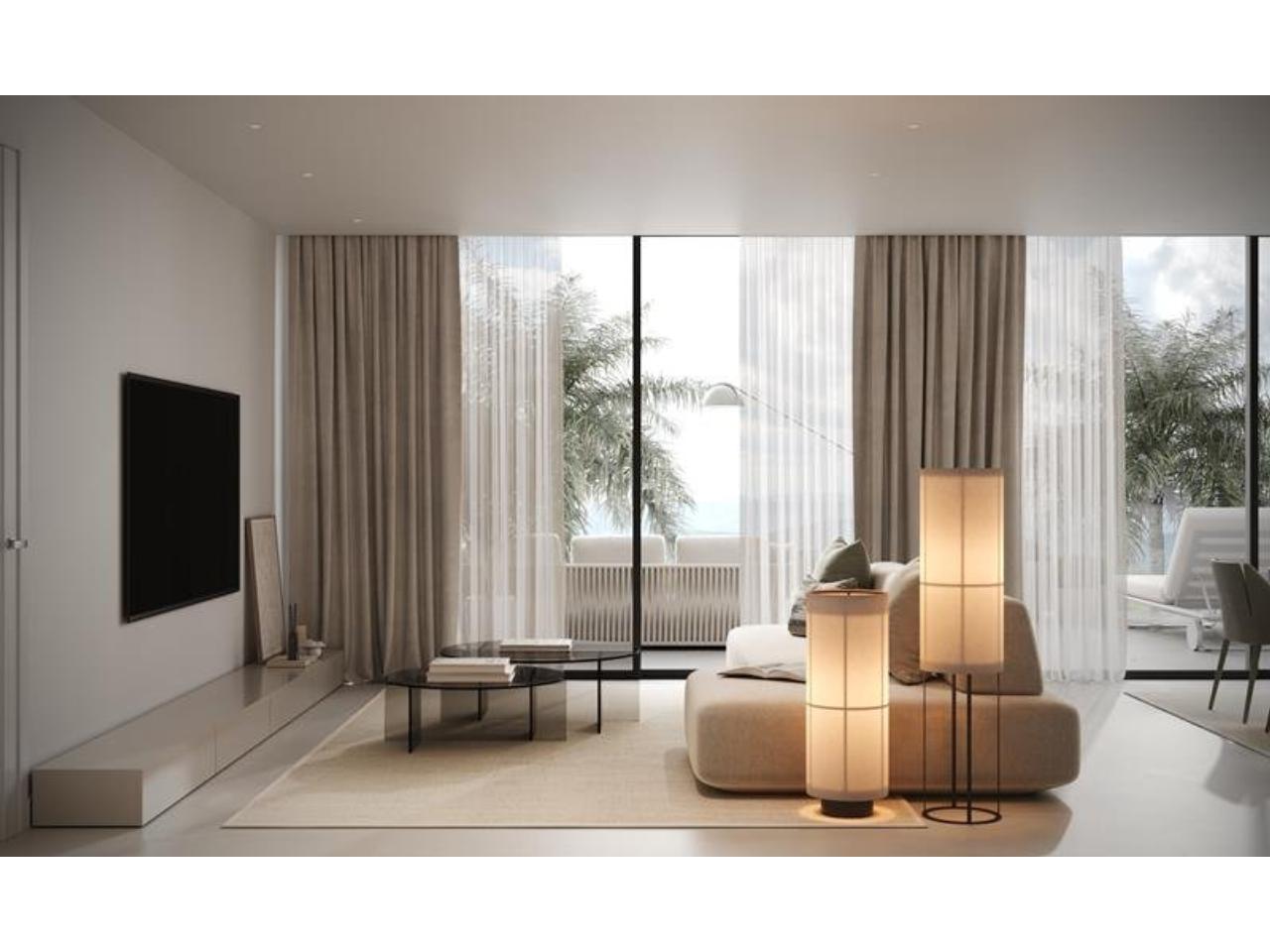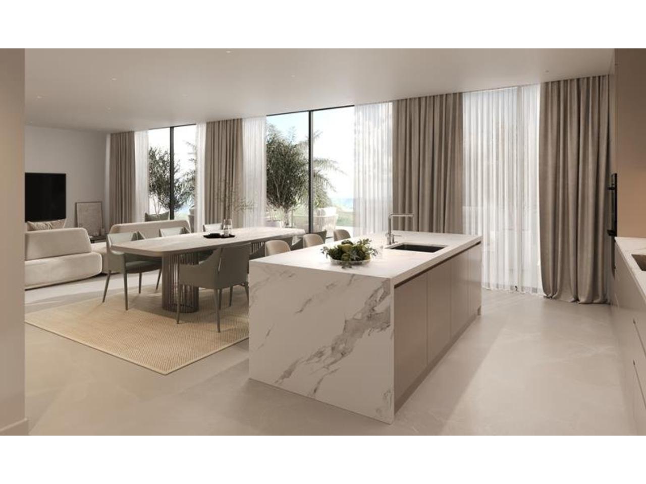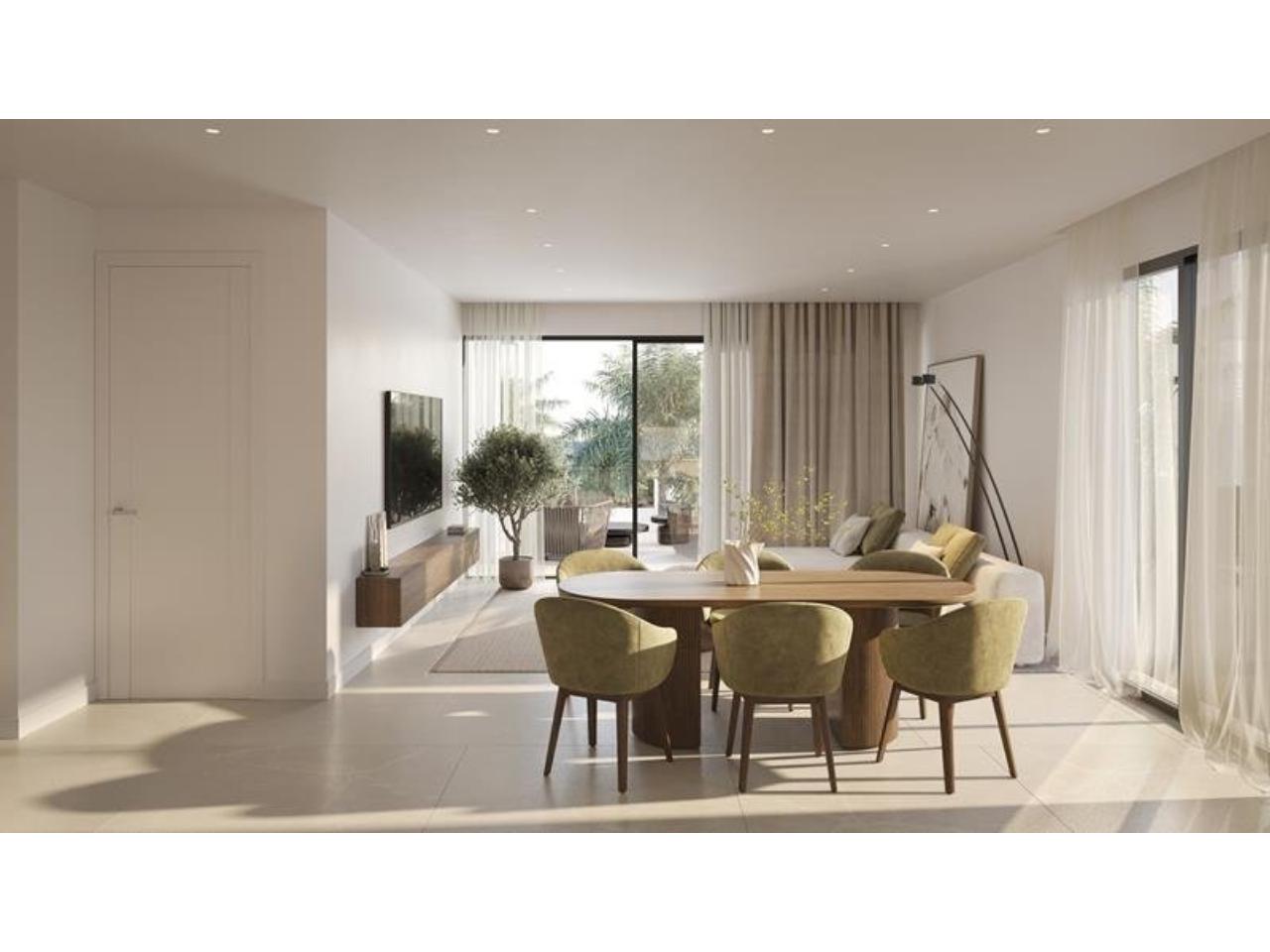Diseño contemporáneo con grandes ventanas que para aprovechar al máximo luz natural. Salones con cocinas abiertas totalmente equipadas. Recinto cerrado con piscina y jardines.