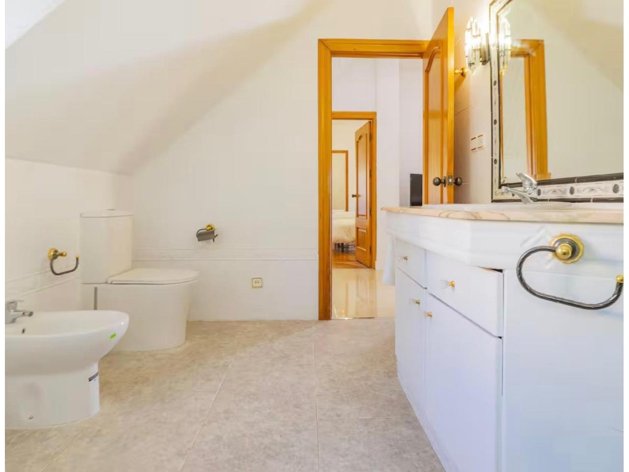 Planta Principal: Elegante recibidor que conduce a un gran salón-comedor con chimenea, diferenciado en zona de estar y comedor formal. Cocina independiente, luminosa y totalmente equipada con electrodomésticos modernos. En esta planta se encuentra el dormitorio principal de grandes dimensiones, con baño en suite (bañera).
