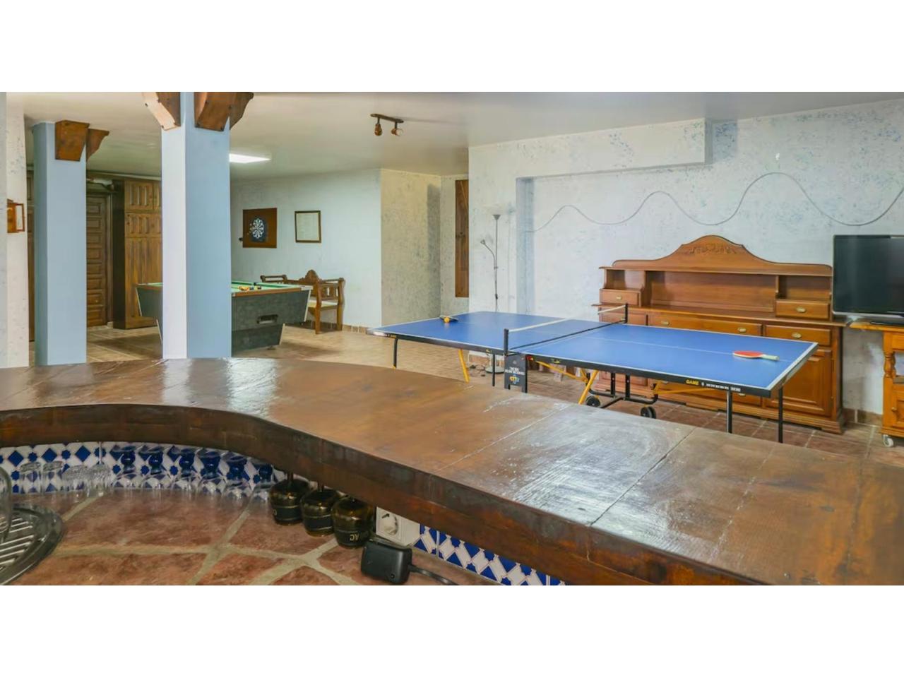 Sótano Multiusos: Esta planta ofrece un valor añadido excepcional. Dispone de una amplia zona de juegos equipada con mesa de billar y ping-pong, ideal para el entretenimiento familiar, incluyendo también un baño adicional con ducha. Además, cuenta con una pequeña estancia independiente muy versátil, perfecta para situar un despacho tranquilo, una zona de lectura o simplemente como cuarto de desahogo y almacenaje,.