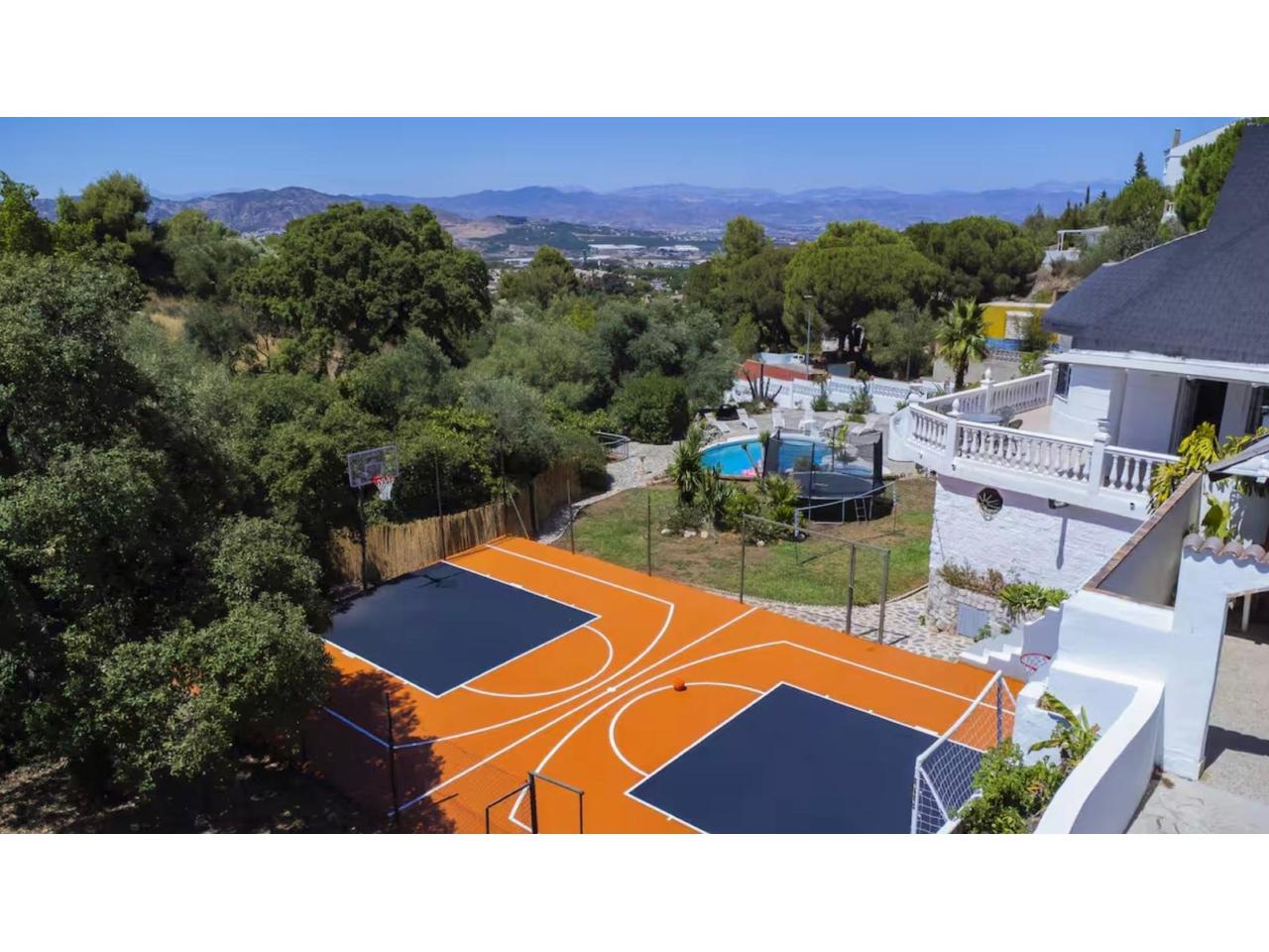Instalaciones recreativas: Áreas deportivas (baloncesto, fútbol mini) y una cama elástica de 3 metros de diámetro, perfecta para el ocio infantil.