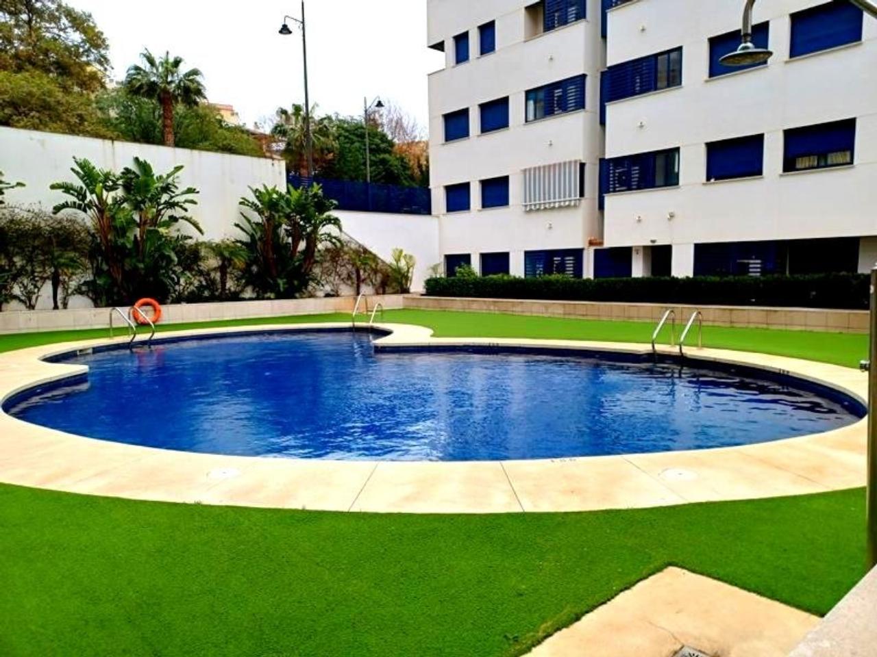 La vivienda cuenta con 2 dormitorios, 2 baños, amplio salón, cocina y lavadero. Terraza a nivel de la vivienda y gran solárium con visitas al mar. Muy buen estado general de la propiedad. Recinto cerrado con zona verde y piscina comunitaria. Plaza de garaje y trastero incluidos.